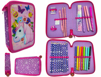 Piórnik Dwukomorowy Szkolny Emoji Jednorożec Z Wyposażeniem Dla Ucznia Róż