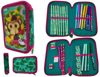 Piórnik Dwukomorowy Szkolny Emoji Małpa Z Wyposażeniem Dla Ucznia Róż Ziel
