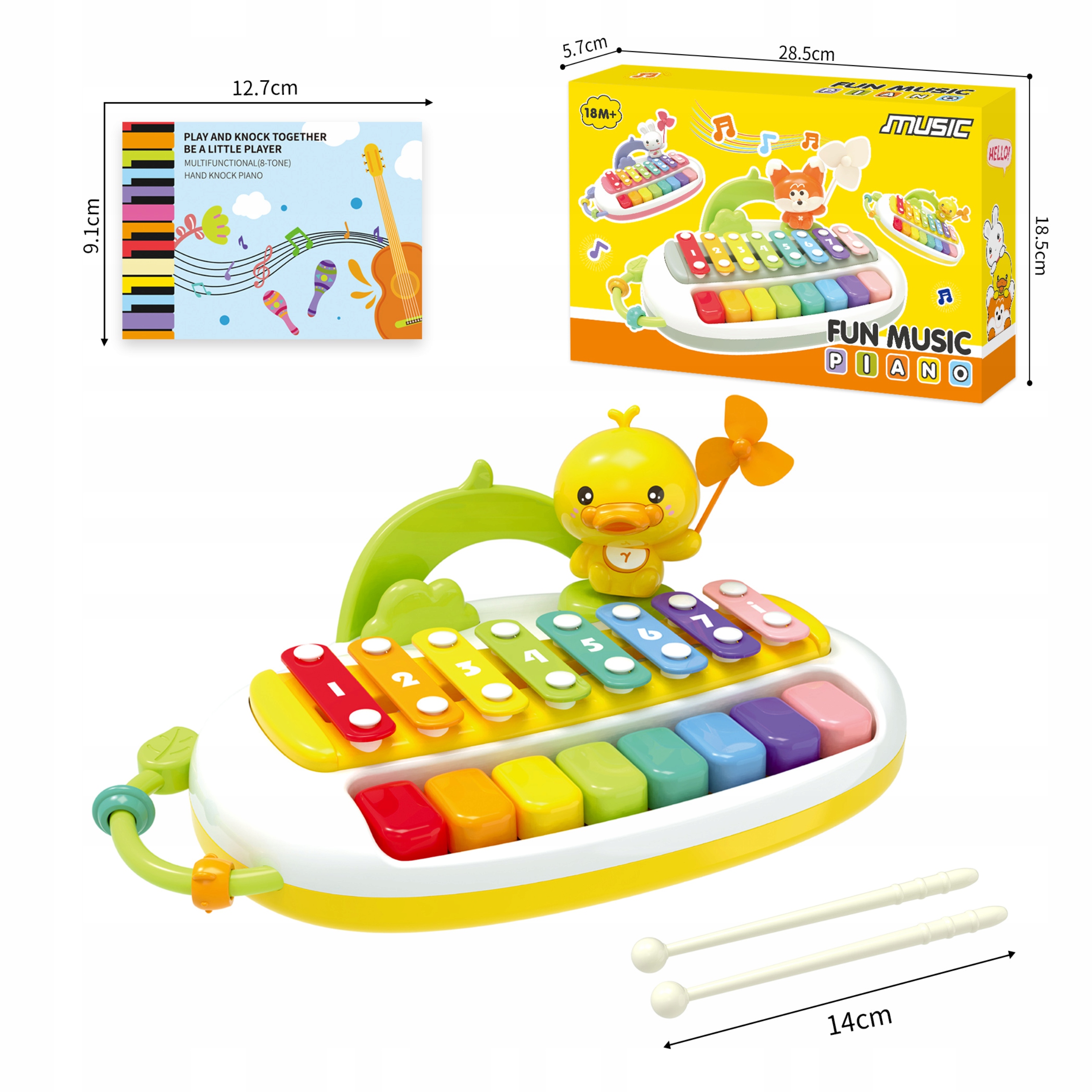 Cymbałki Kaczuszka Dla Dzieci Pianinko Edukacyjne 2w1 Pałeczki Muzyka