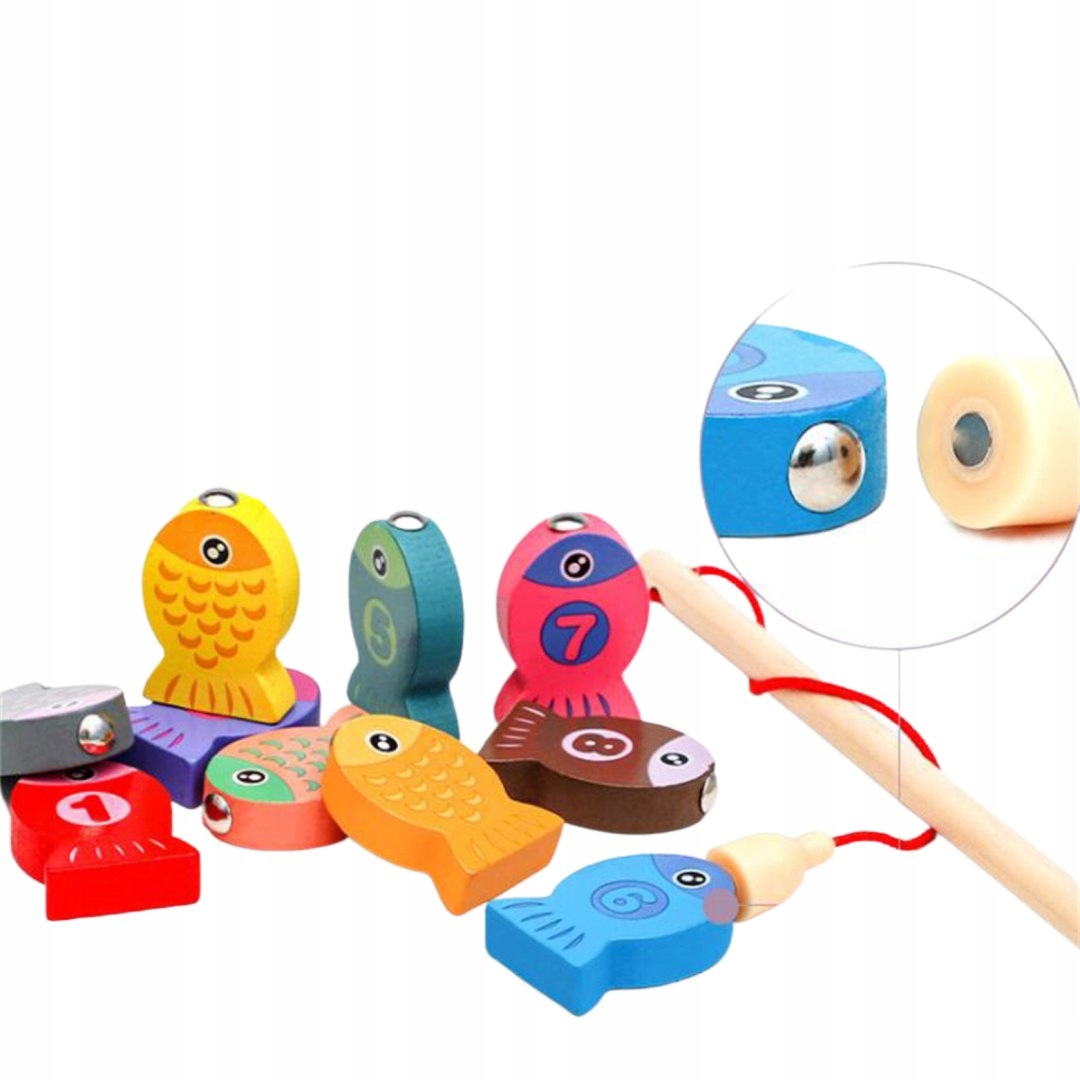 DREWNIANE ŁOWIENIE RYBEK MAGNETYCZNE GRA ZRĘCZNOŚCIOWA TRENING MÓZGU CYFRY