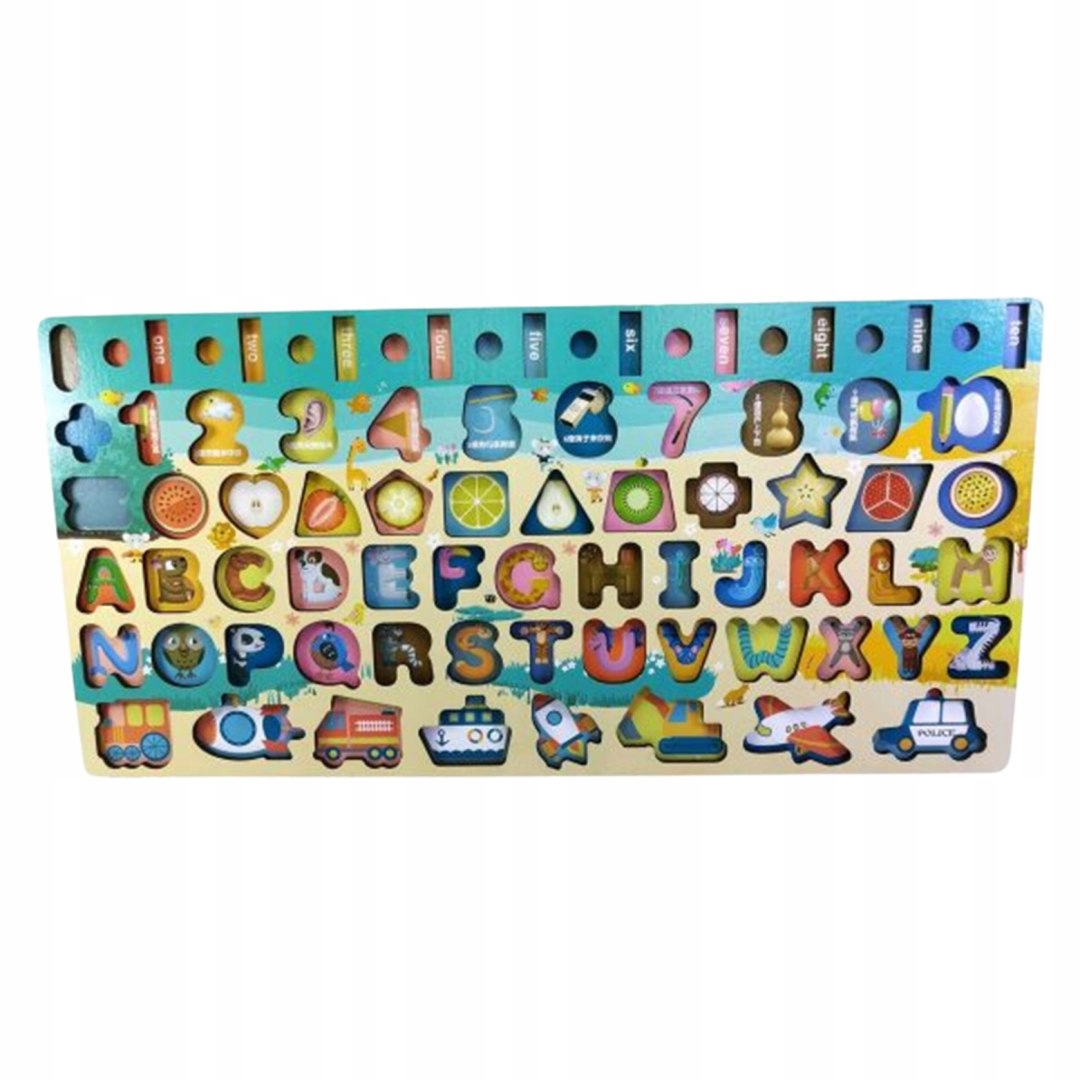 Drewniane zabawki nie tylko dostarczają radości, ale także uczą poprzez zabawę. Dzięki temu zestawowi dziecko pozna świat liter, matematyki, kształtów i kolorów.