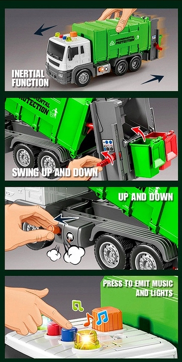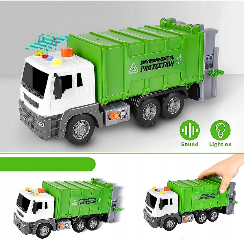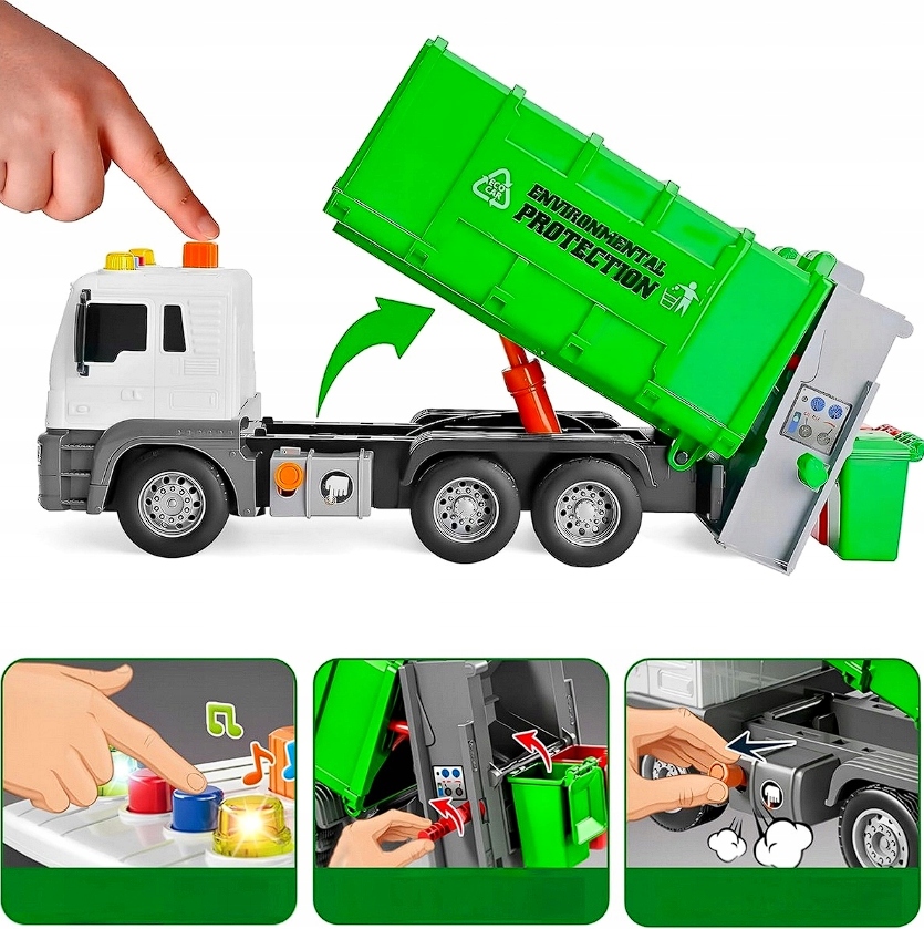 - 1 x Duża śmieciarka z efektami dźwiękowymi i świetlnymi