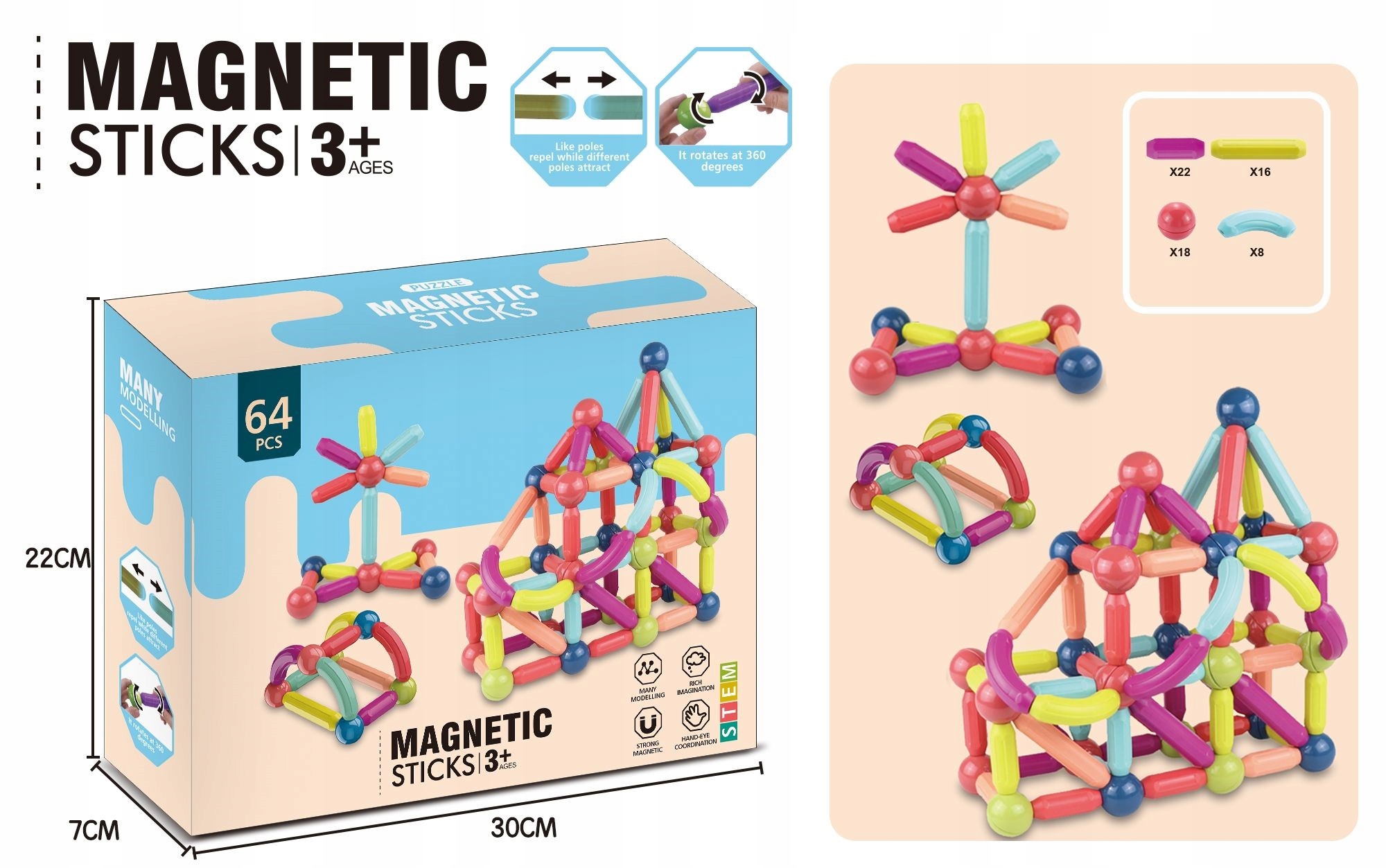 - 64 różnorodne elementy magnetyczne