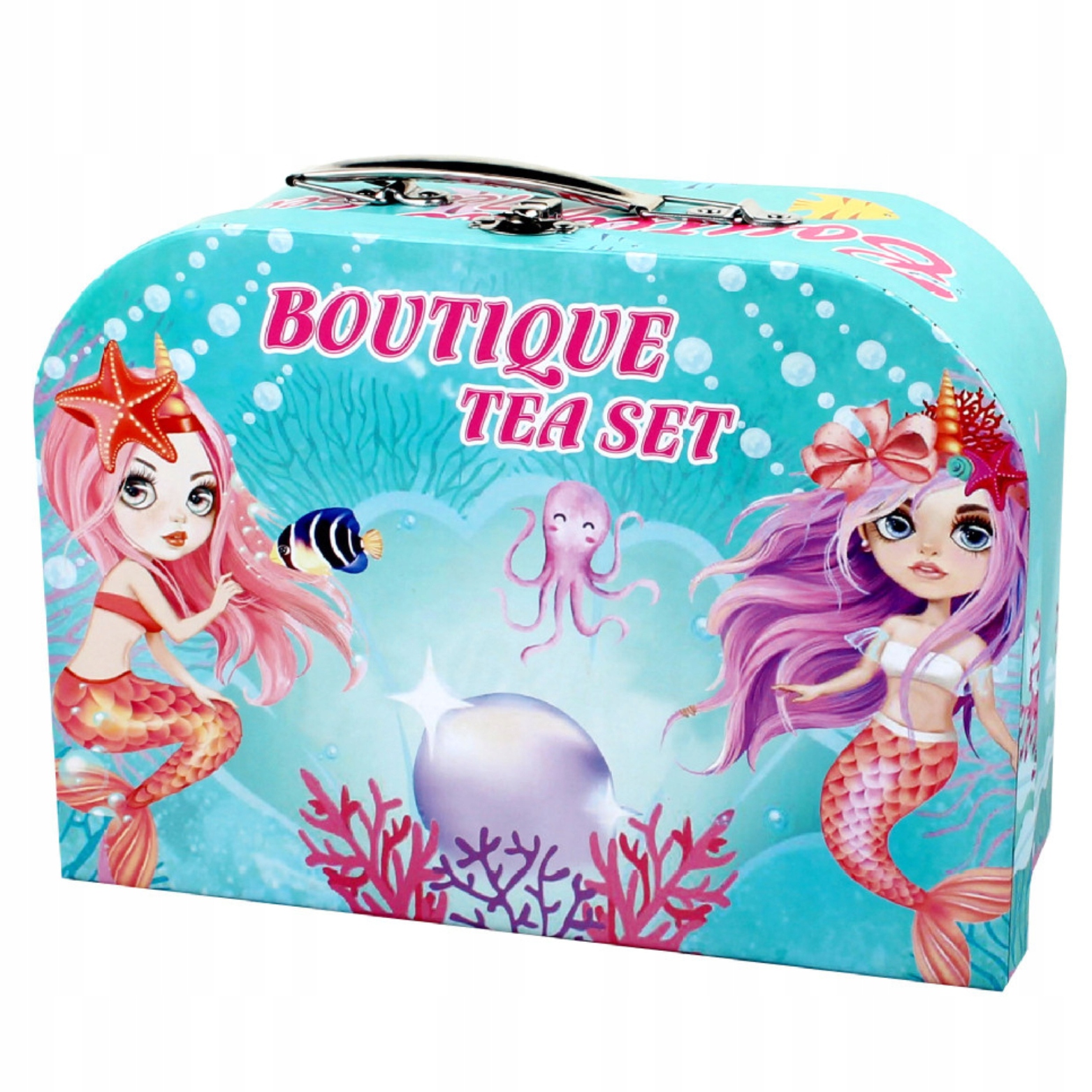 DUŻY ZESTAW DO HERBATY W WALIZCE SYRENKI DZBANEK TACA TALERZE FILIŻANKI