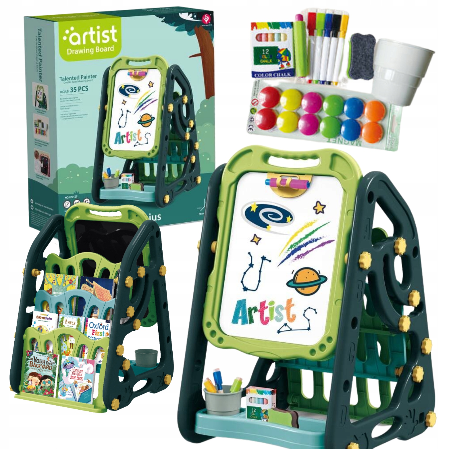 DWUSTRONNA MAGNETYCZNA TABLICA KREATYWNA MAŁY ARTYSTA KREDA MARKERY MAGNESY