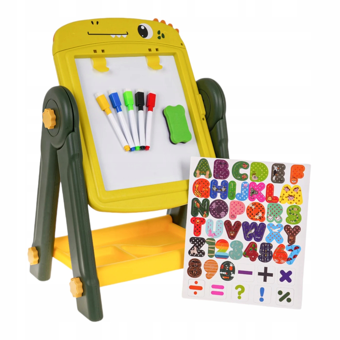 � Tablica Dinozaur to nie tylko zabawka – to narzędzie do nauki poprzez zabawę! Dzięki możliwości przyczepiania magnesów z literkami i cyframi dzieci mogą rozwijać umiejętności czytania, liczenia i rozwiązywania prostych działań matematycznych. Zabawka ta wspomaga rozwój motoryki małej oraz koncentracji, ucząc przy tym cierpliwości i precyzji.
