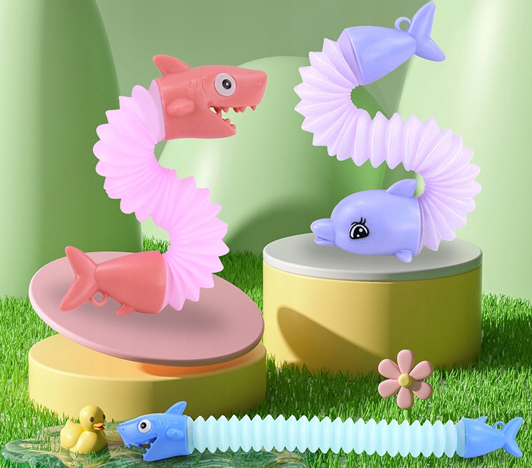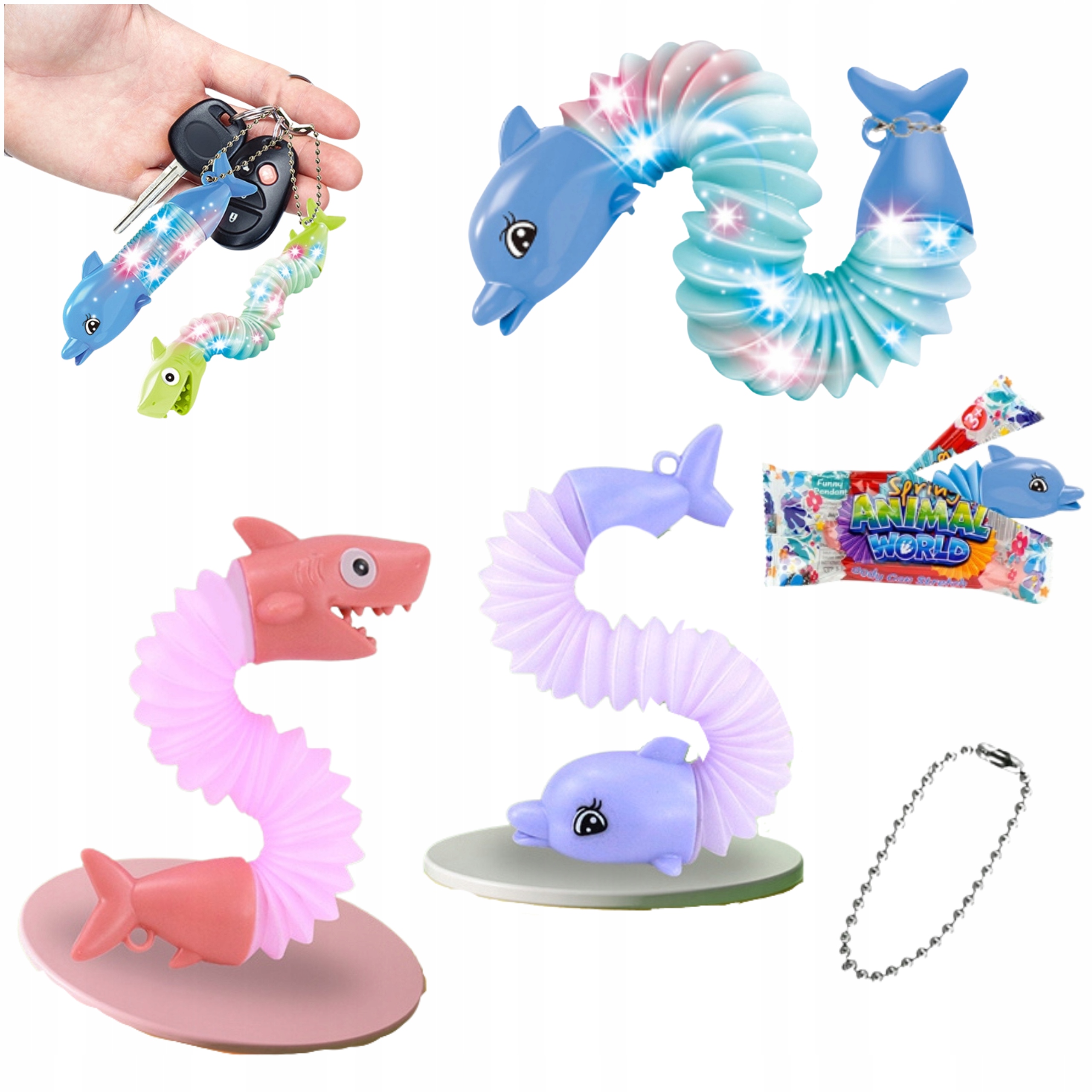 ⭐ Gąsienica sensoryczna delfin lub rekin antystresowa POP Tube LED – magiczna zabawa dla każdego dziecka