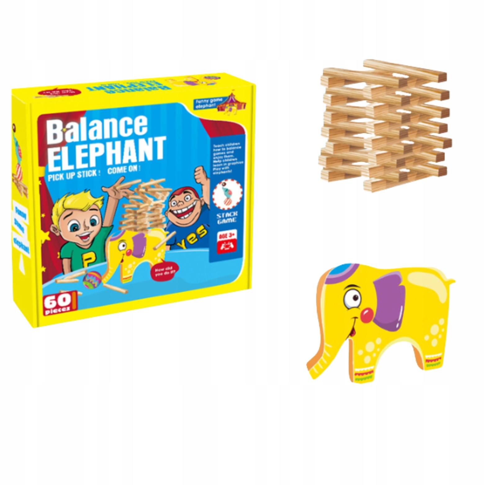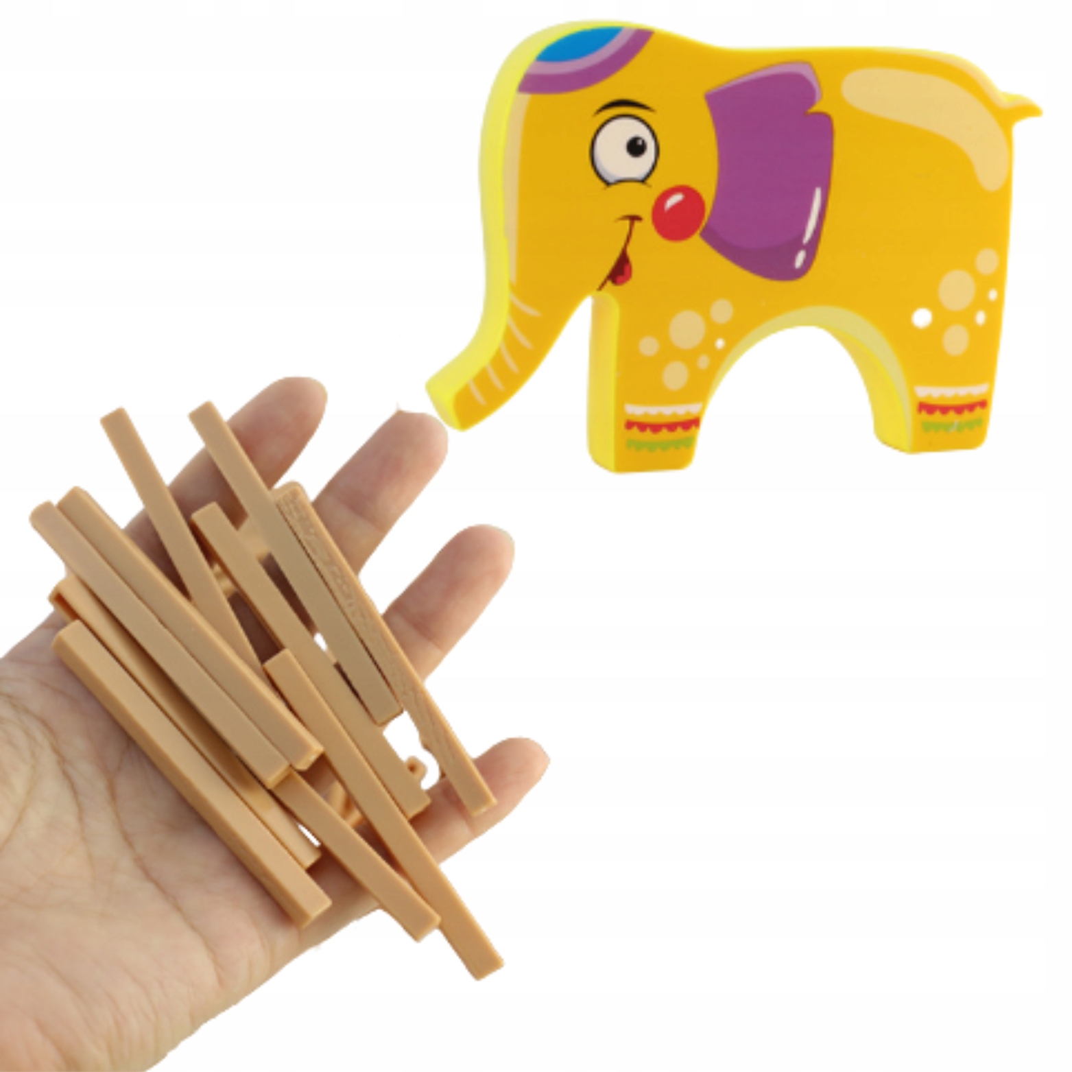 Rozgrywka polega na tym, że uczestnicy na zmianę układają patyczki na drewnianym słoniku, starając się utrzymać konstrukcję w równowadze. Wieża rośnie coraz wyżej, a emocje sięgają zenitu - każdy ruch wymaga przemyślenia i strategii. Jeśli konstrukcja się przewróci, gracz przegrywa rundę. Dzięki temu zabawa nabiera dynamiki i uczy planowania kolejnych kroków.