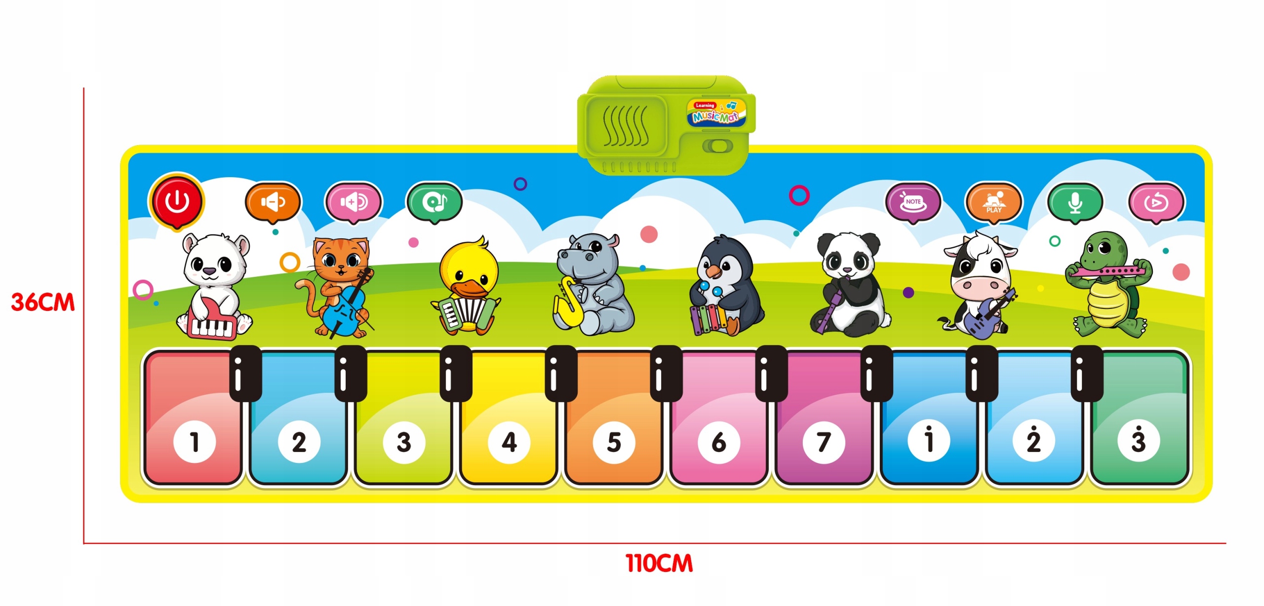 ✅ Duża mata interaktywna – aż 109,5 × 37,5 cm powierzchni zabawy