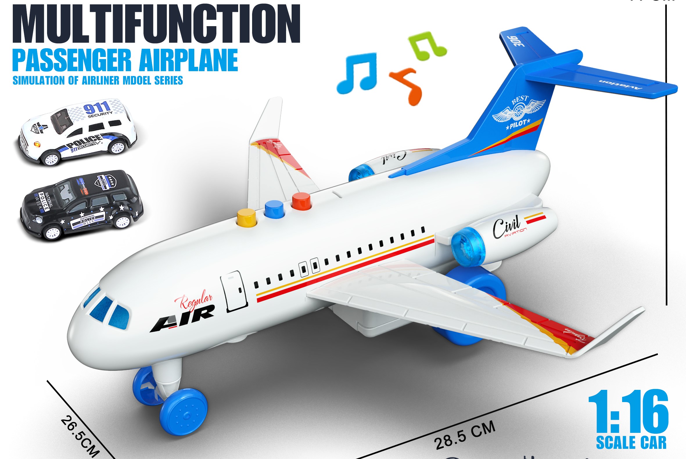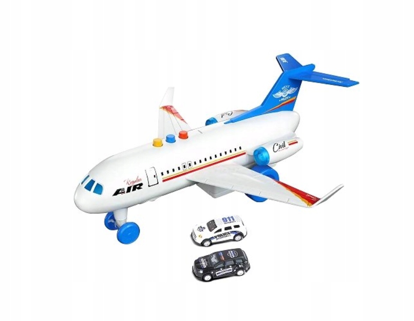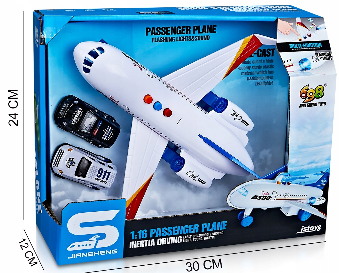 Interaktywny Biały Samolot z Efektami Świetlnymi Dźwiękowymi Dwa Samochody