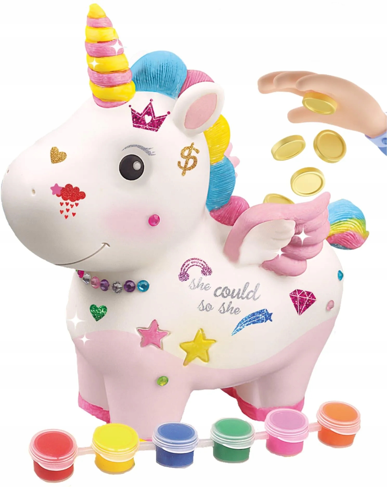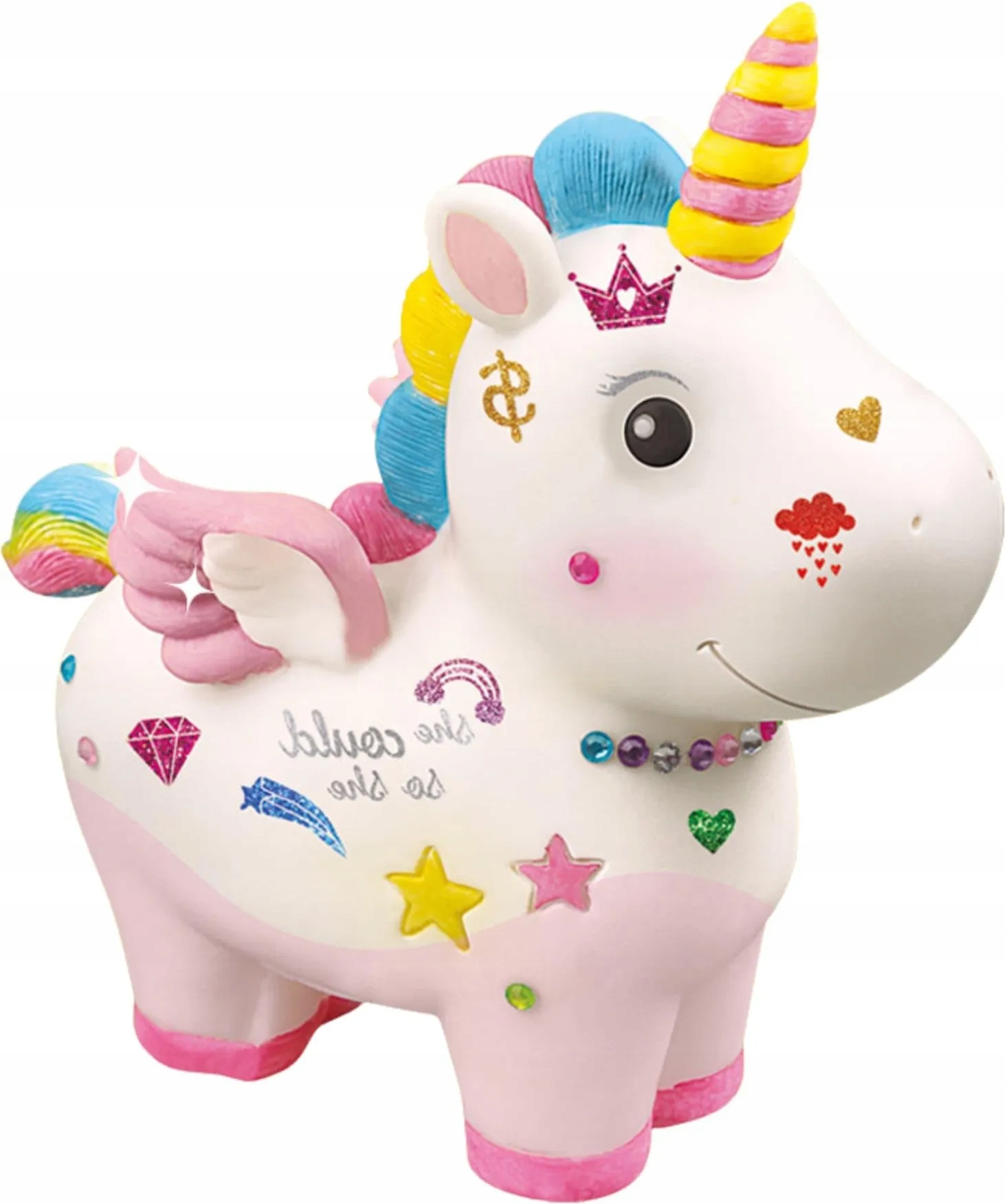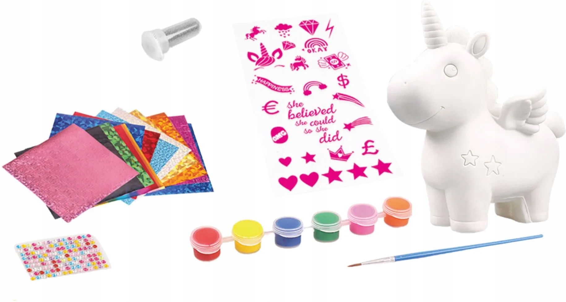 JEDNOROŻEC SKARBONKA STOJĄCA DLA DZIECI KREATYWNY FIGURKA FARBKI NAKLEJKI