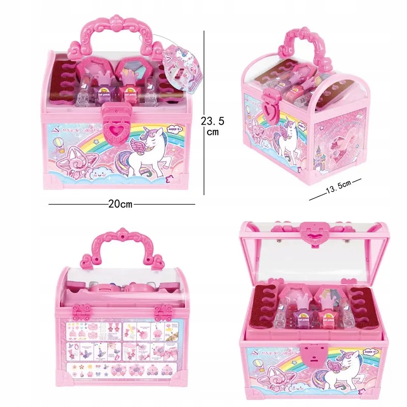 Wszystkie kosmetyki zawarte w zestawie są bezpieczne dla dzieci i specjalnie dostosowane do delikatnej skóry - nie zawierają szkodliwych substancji. Zestaw ten to doskonały pomysł na kreatywną i pełną uroku zabawę oraz świetny prezent, który rozbłyśnie w oczach każdej małej damy.