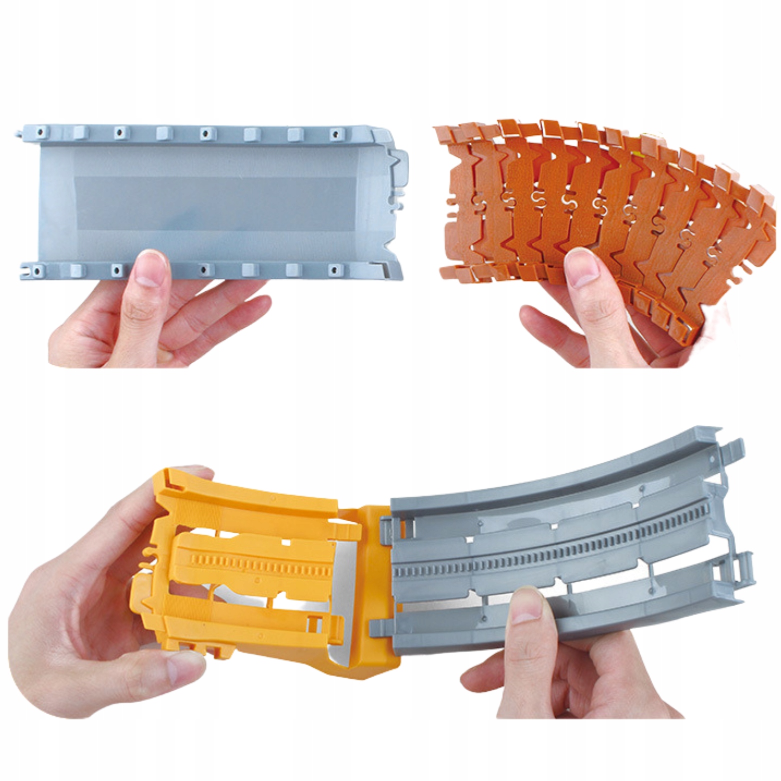 ✔️ Elastyczne elementy toru: Elastyczne części toru mogą być dowolnie skręcane, zginane i układane, co daje nieograniczone możliwości w tworzeniu różnorodnych tras.