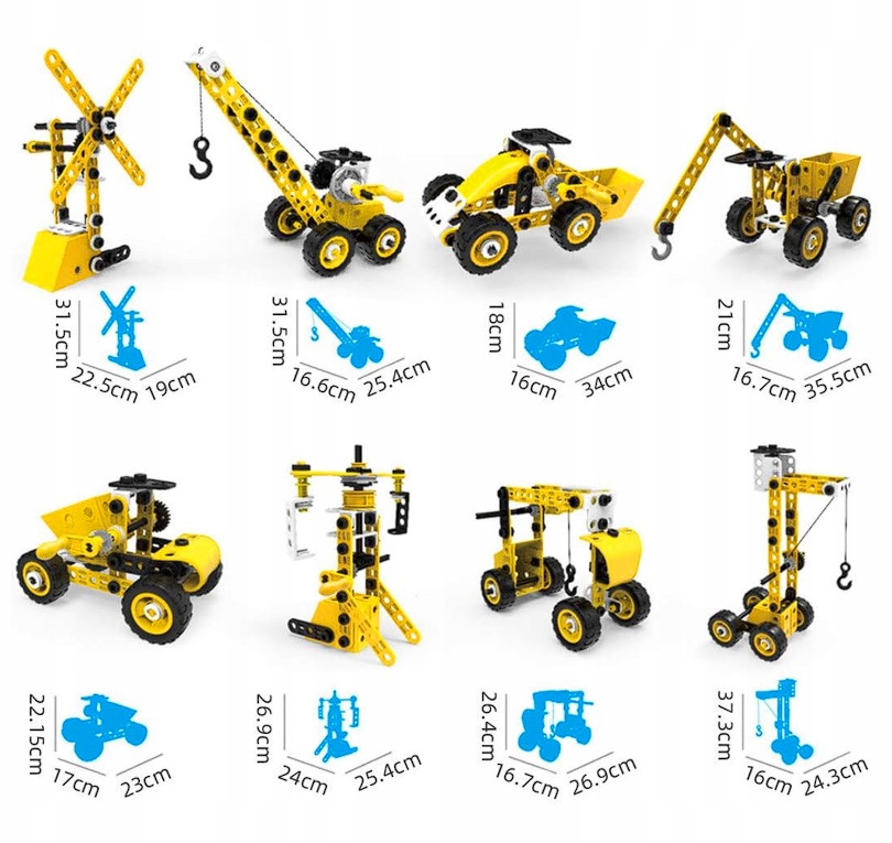 ✓ Możliwe modele do zbudowania: 8 (Maszyny Budowlane, Pojazdy)