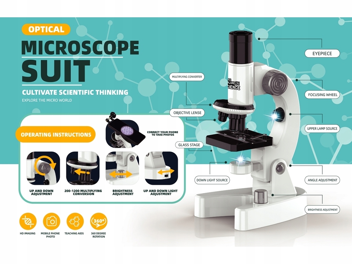 ✅ Profesjonalne powiększenie – 3-stopniowe przybliżenie: 200x, 600x, aż do 1200x, idealne do odkrywania świata mikroorganizmów.
