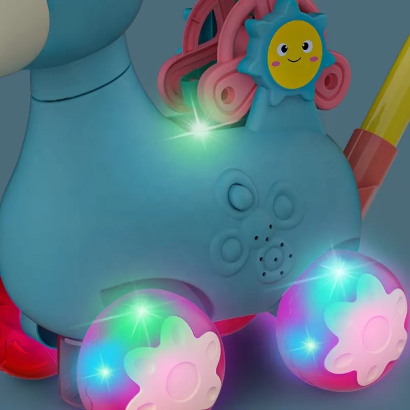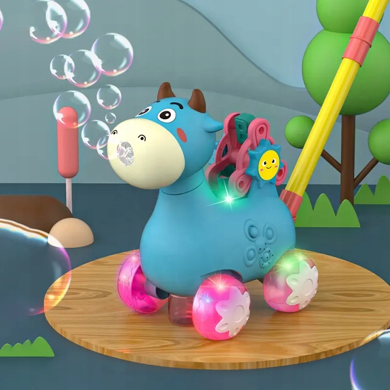 ✅ Wielofunkcyjność 3w1 – uroczy pchacz, świecąca zabawka i generator baniek w jednym!