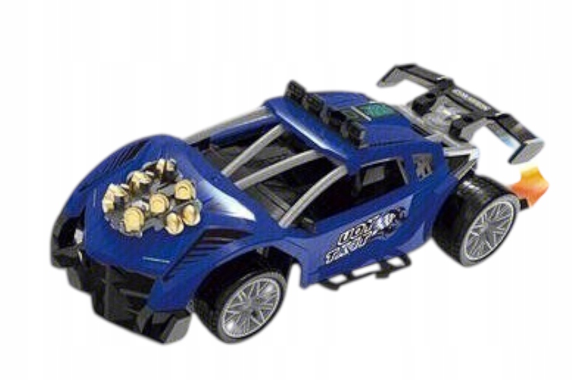 NIEBIESKIE ZDALNIE STEROWANE AUTKO RC Z EFEKTEM DYMU I ŚWIATŁAMI SKALA 1:20