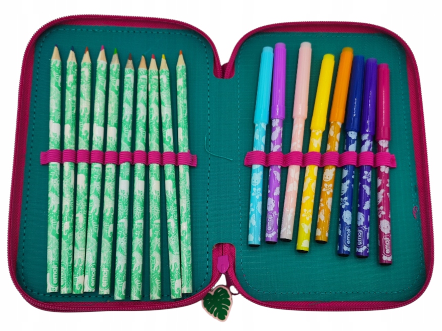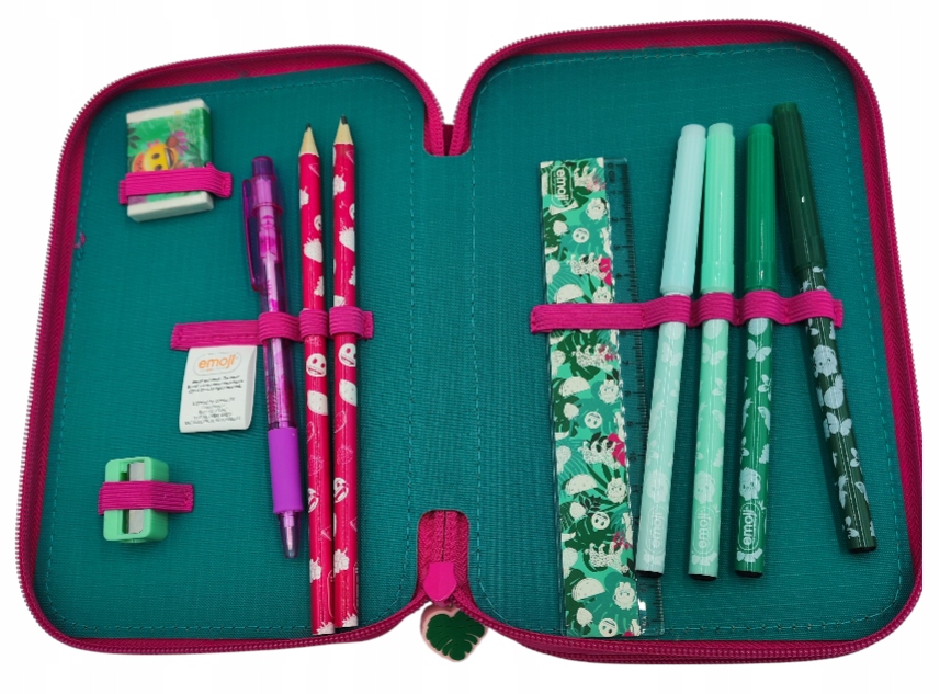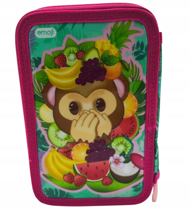 Piórnik Dwukomorowy Szkolny Emoji Małpa Z Wyposażeniem Dla Ucznia Róż Ziel