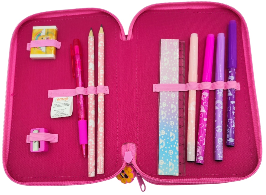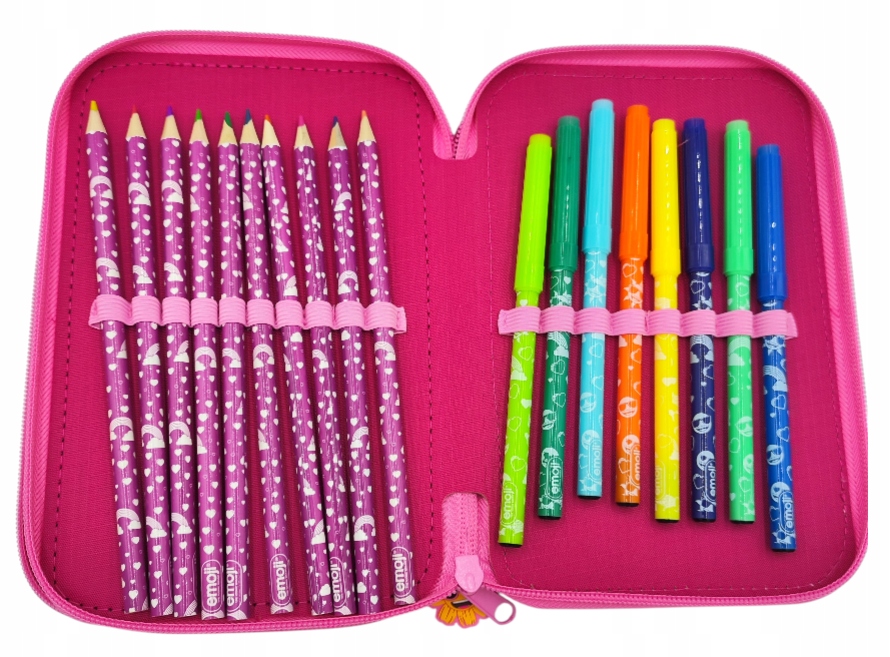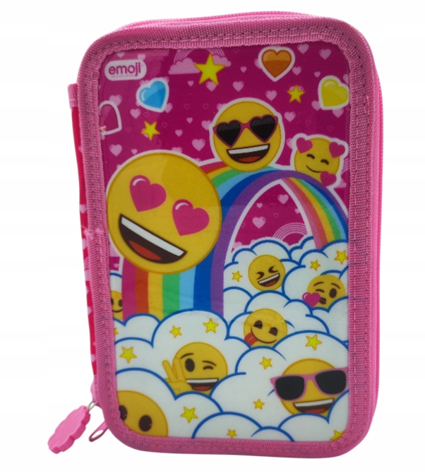 Piórnik Dwukomorowy Szkolny Emoji Z Wyposażeniem Dla Ucznia Różowy Tęcza