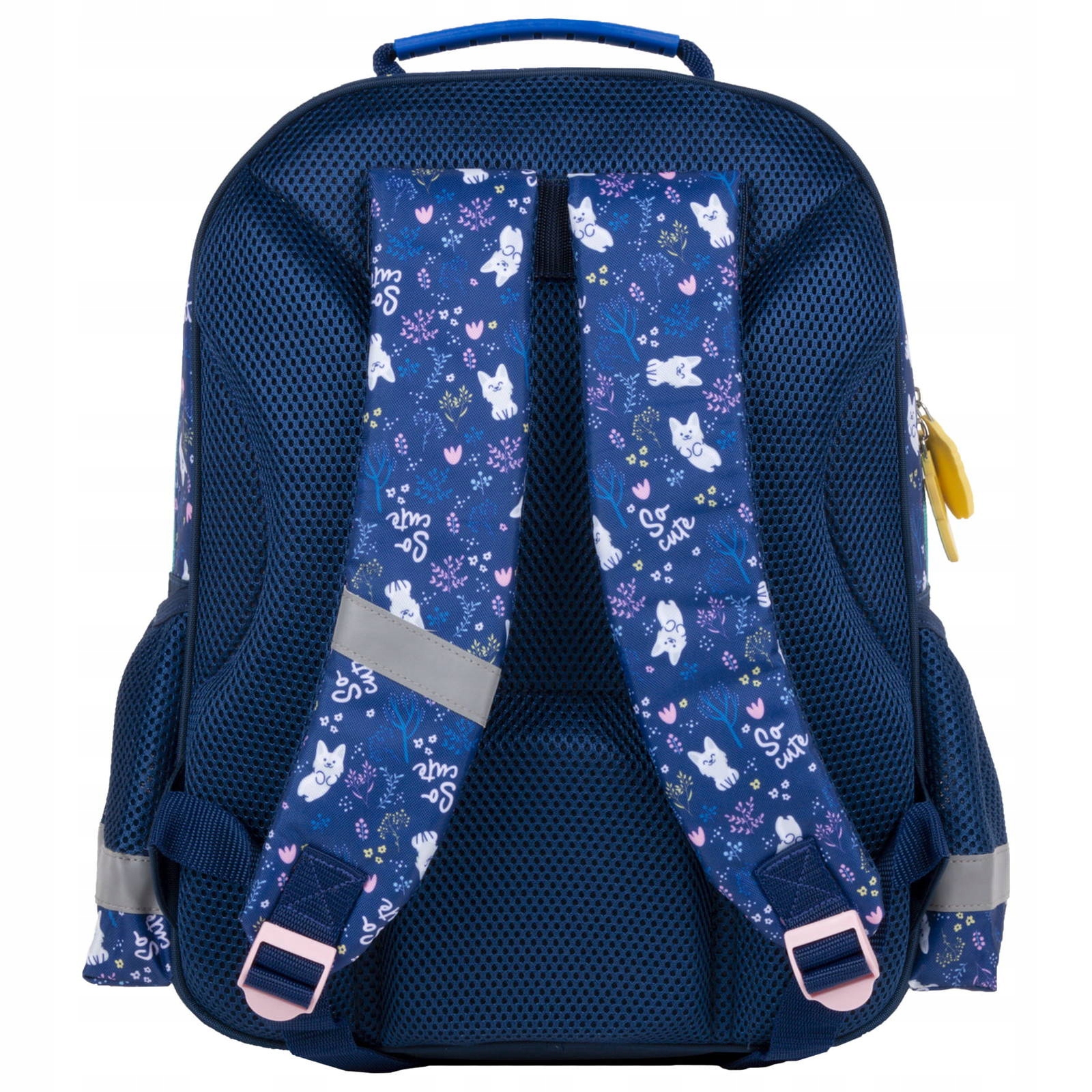 Plecak posiada miękkie wyściełane szelki, ergonomiczne plecy, taśmy odblaskowe, wzmacnianą rączkę oraz wzmacniane dno.