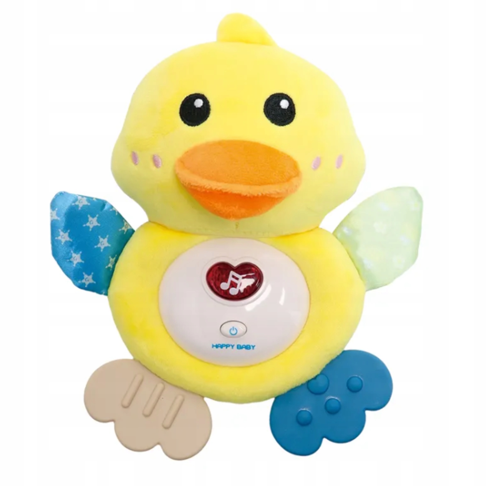 Pluszowa kaczuszka do spania dla dzieci i niemowląt z możliwością zawieszenia w dowolnym miejscu, elementem gryzaka i spokojnymi dźwiękami to doskonały wybór dla Twojego dziecka.