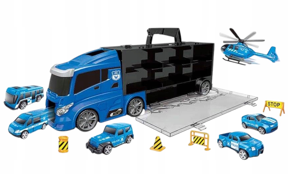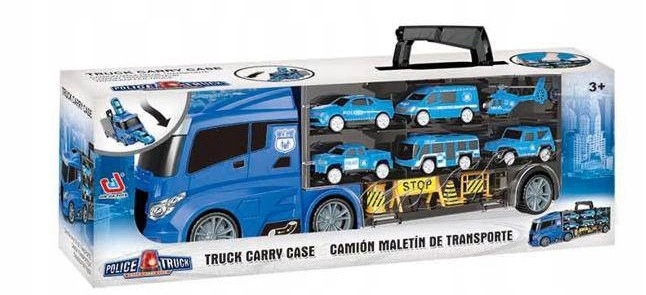 Pojazd Niebieska Ciężarówka Walizka z Samochodami Tir Helikopter Barierki