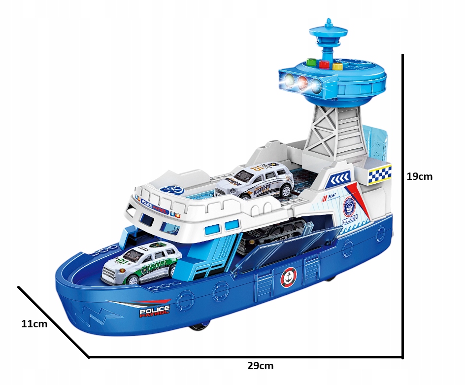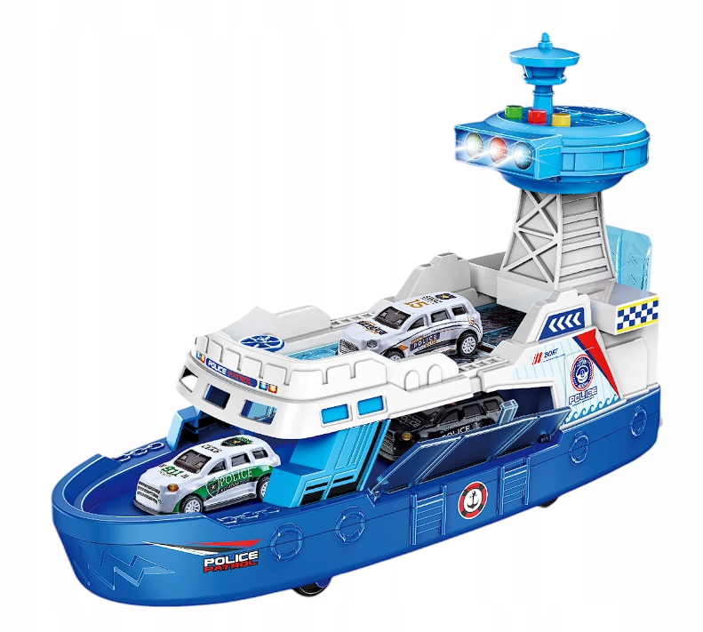 Policyjny Statek Efekty Światło Dźwięk Zestaw z Samochodzikami Niebieski