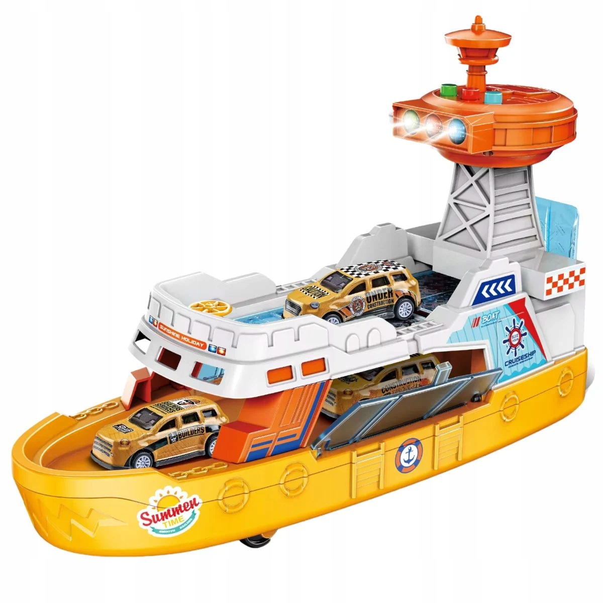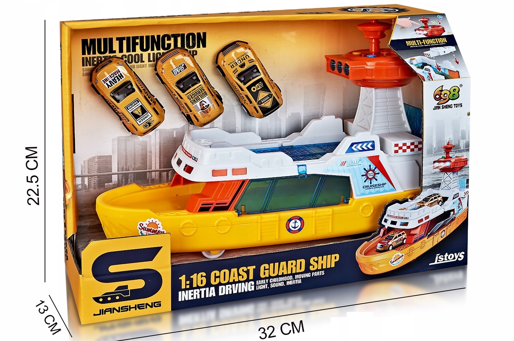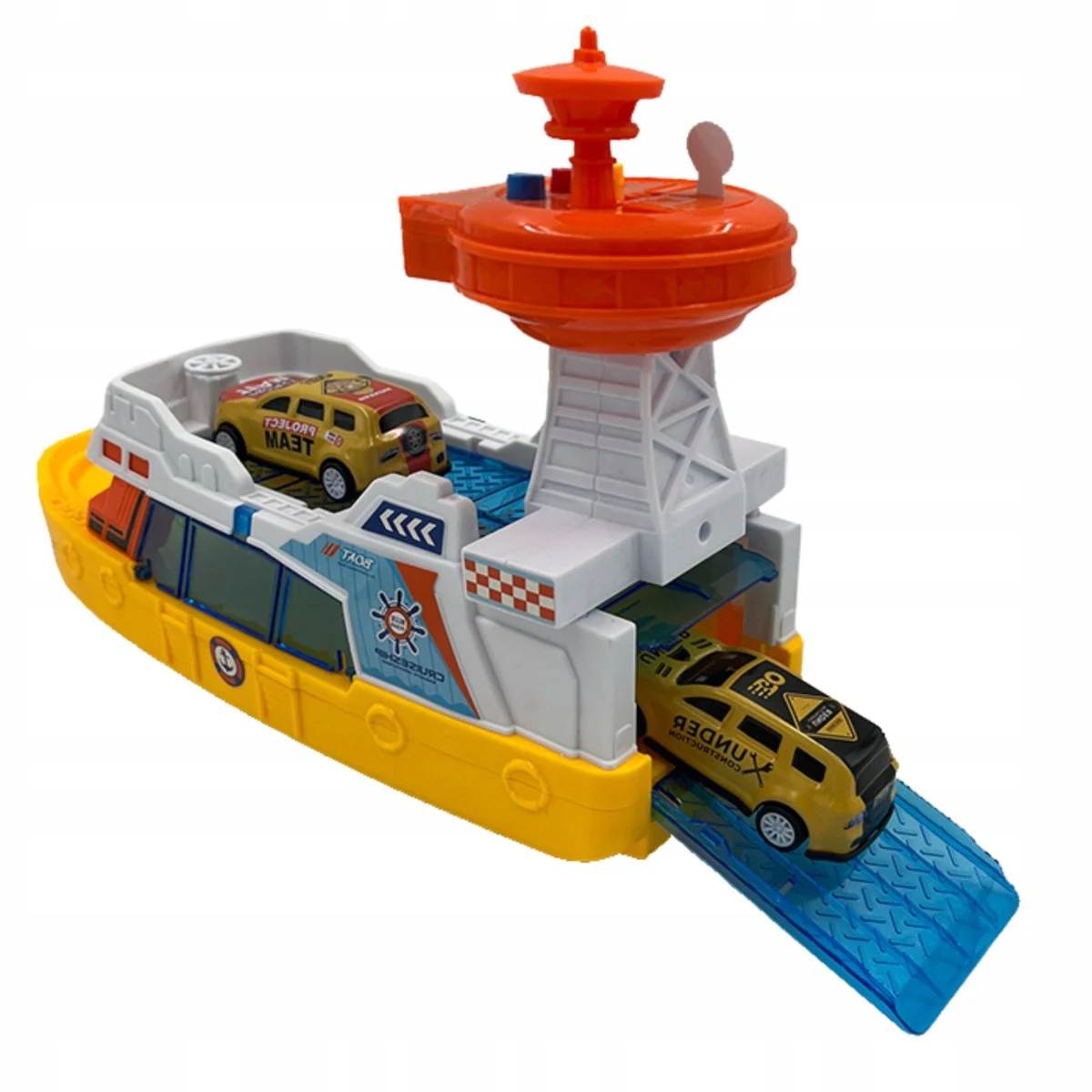 Policyjny Statek Efekty Światło Dźwięk Zestaw z Samochodzikami Pomarańczowy