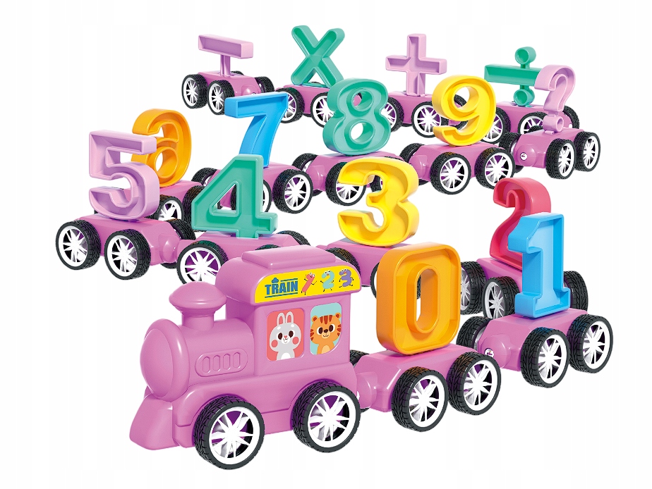 Różowy Edukacyjny Pociąg Magnetyczny Nauka Liczb Działań Montessori 31el