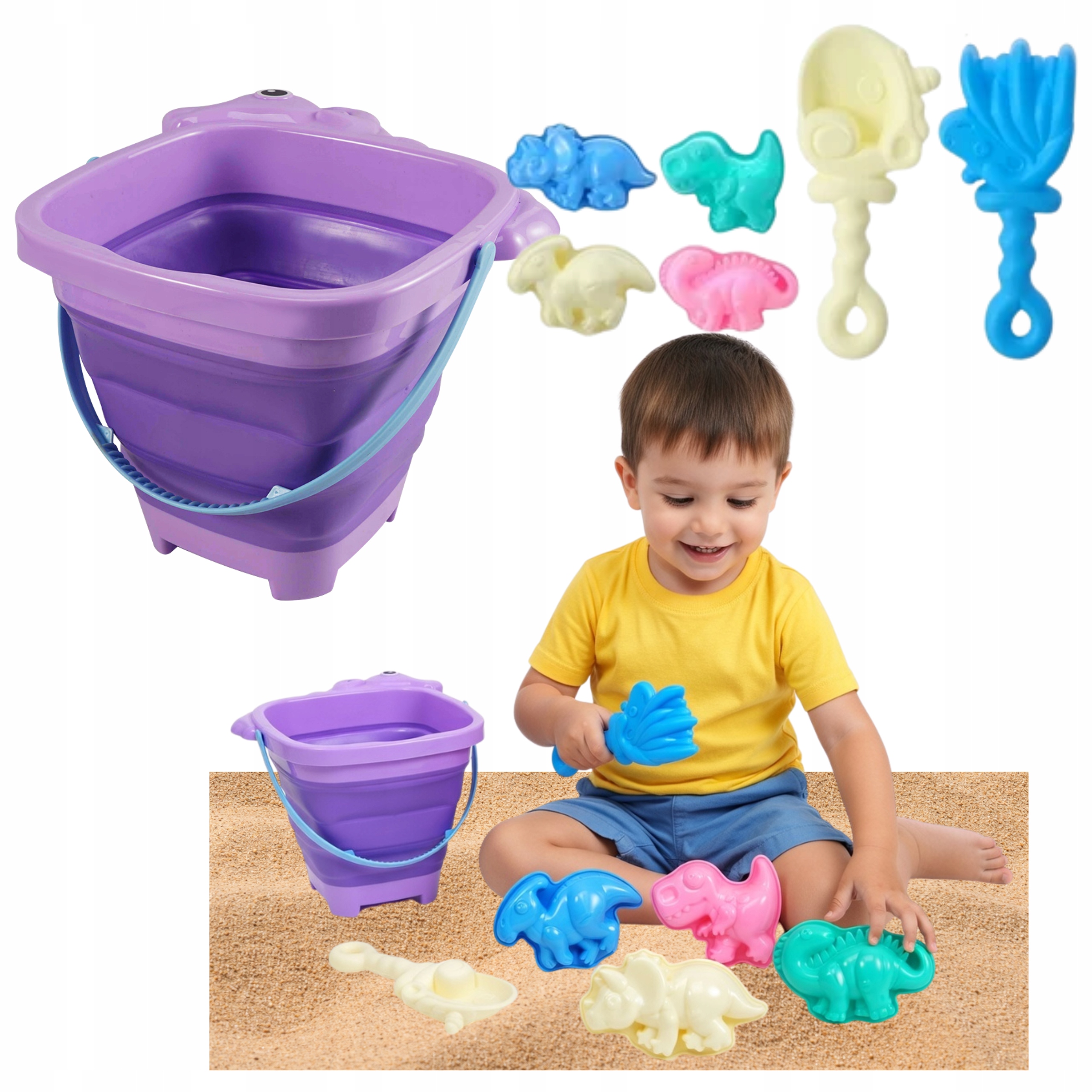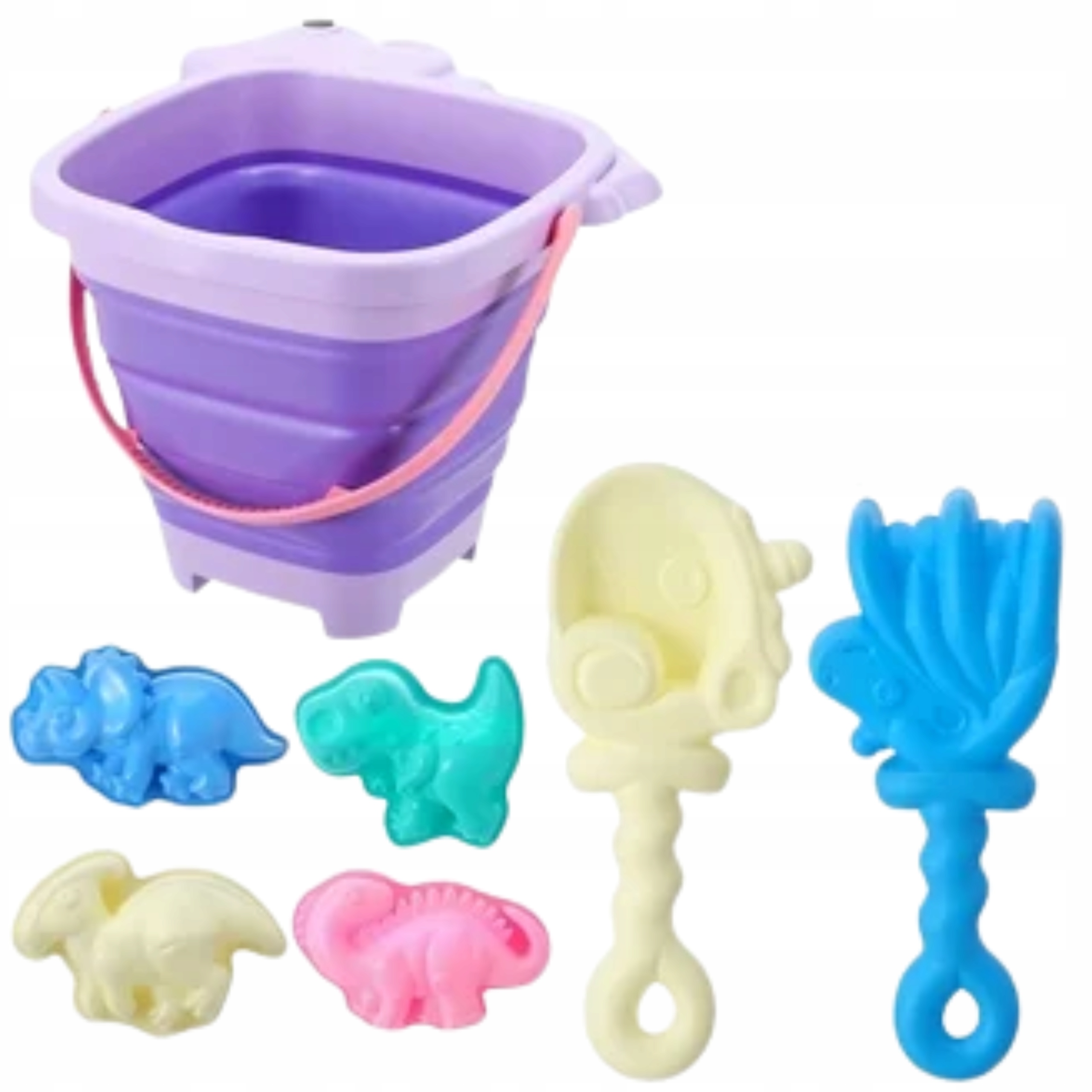 Składane Wiaderko z Grabkami Foremki Dinozaury Do Piasku Plaża Fioletowe