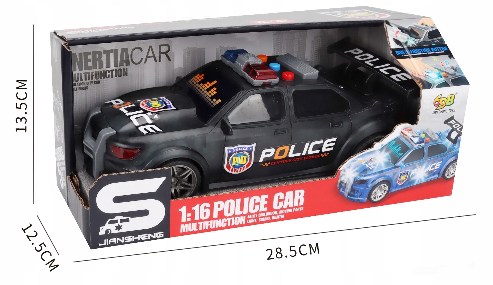 Sportowe Auto Policyjne Samochód Pojazd Czarny Dźwięk Światło Inercja 1:16