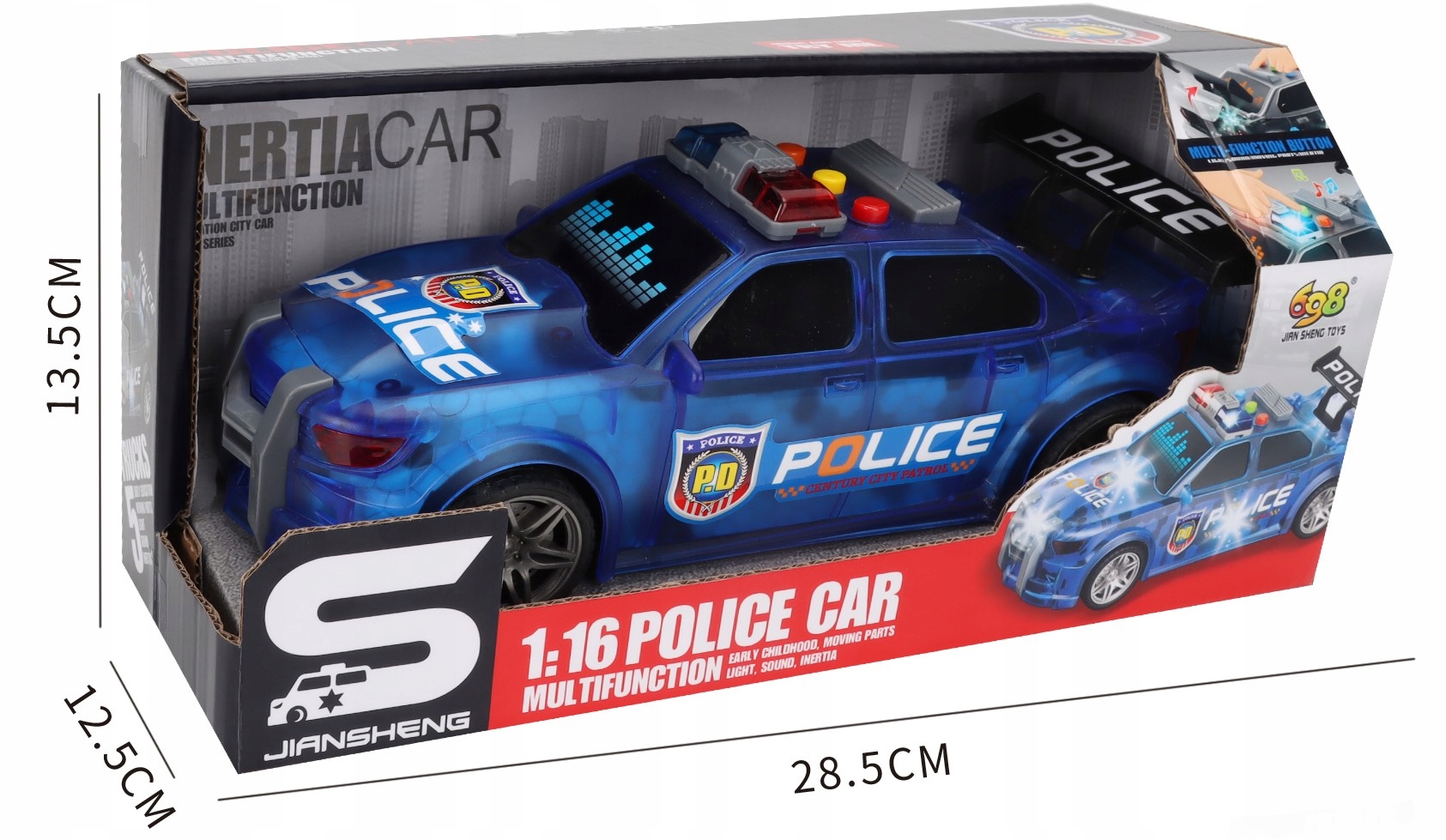Sportowe Auto Policyjne Samochód Pojazd Niebieski Światło Inercja 1:16