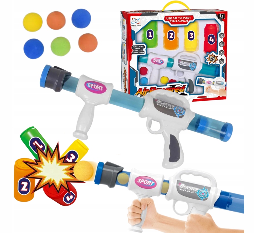 Zestaw zachęca dzieci do rywalizacji i doskonalenia swoich umiejętności strzeleckich. Dzięki miękkim, piankowym kulkom zabawa jest całkowicie bezpieczna.