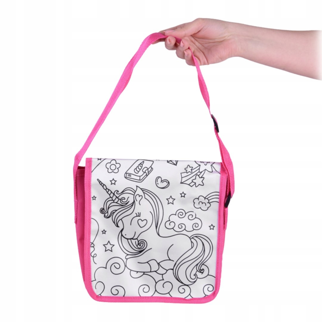 - Kolor torebki: Różowy z motywem jednorożca