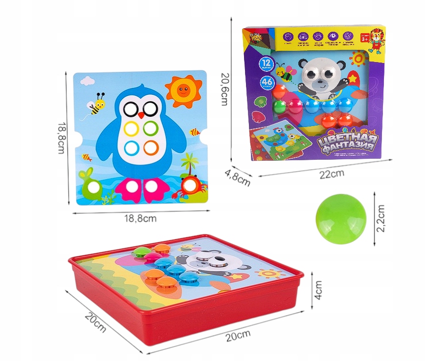 UKŁADANKA GUZIKI MOZAIKA EDUKACYJNA KREATYWNA MIŚ TRENING RĘKI ŻYWE KOLORY