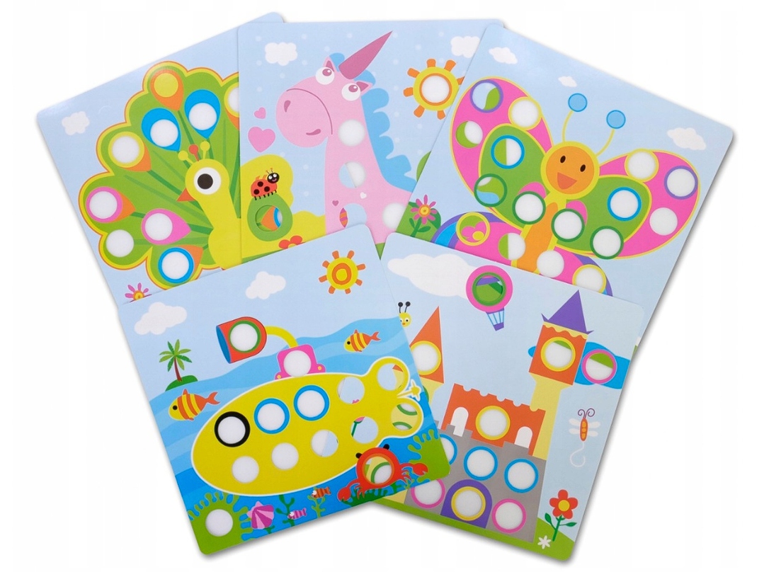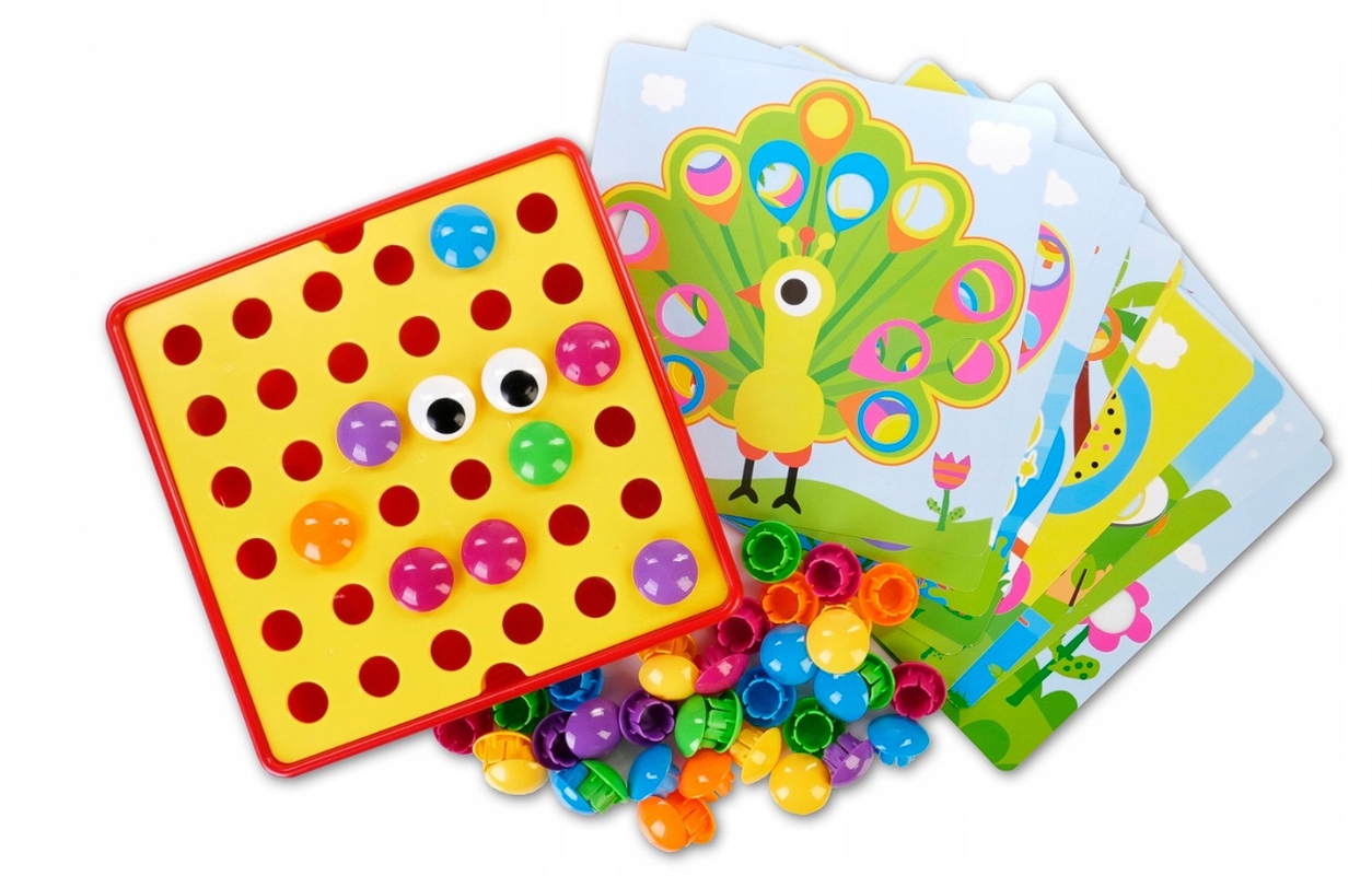 UKŁADANKA GUZIKI MOZAIKA EDUKACYJNA KREATYWNA ZWIERZĘTA TRENING ŻYWE KOLORY