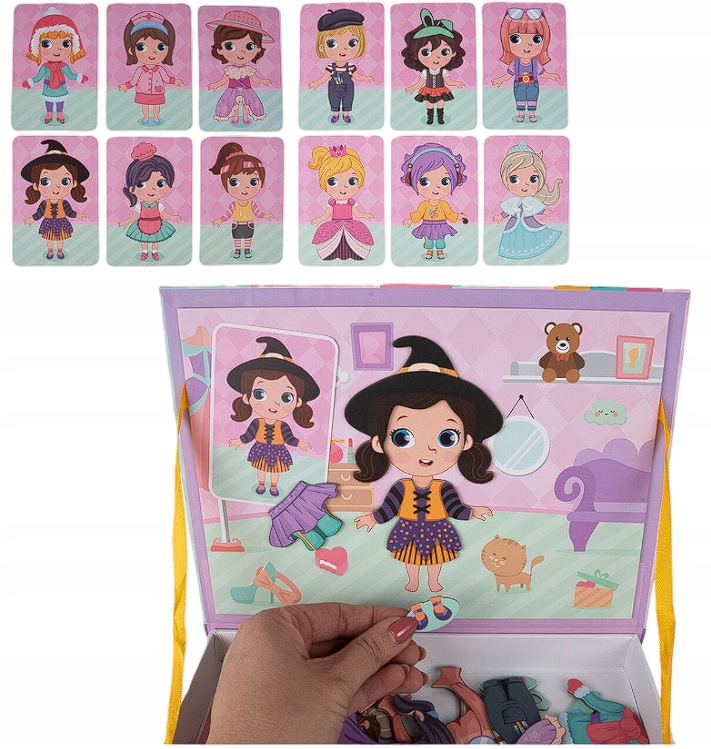 UKŁADANKA MAGNETYCZNA KSIĄŻKA PUZZLE POKAZ MODY UBIERANIE DZIEWCZYN UBRANKA