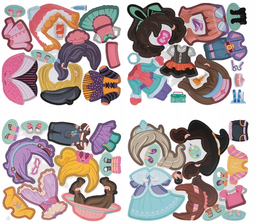✅ Kreatywna zabawa w ubieranie dziewczynki – 51 magnesów do stylizacji