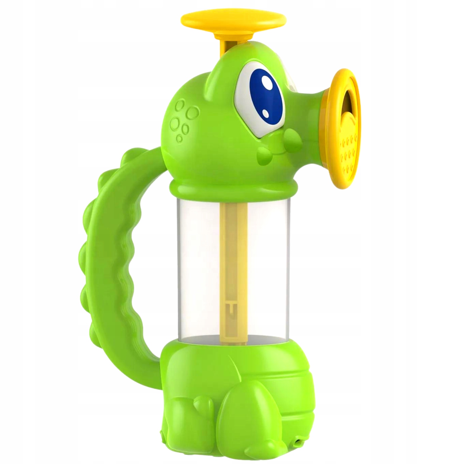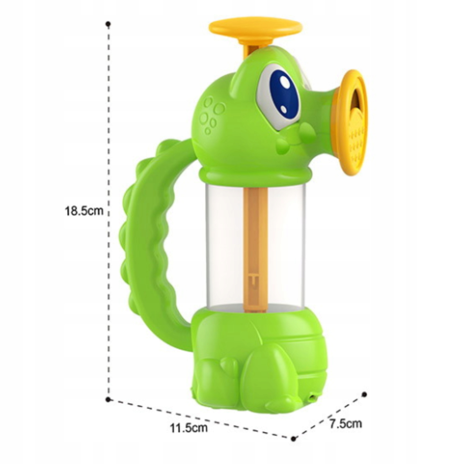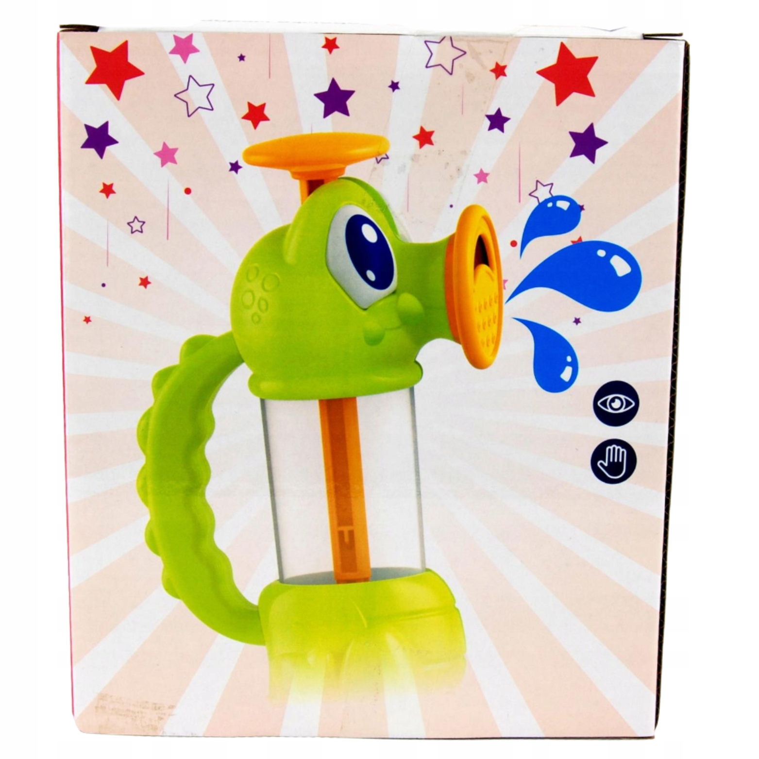 W zabawce jest zamontowana pompka, dzięki której woda przedostaje się do środka.Aby pozbyć się wody ze zwierzątka, wystarczy podnieść pompkę do góry, a przez dziubek wydostanie się strumień wody. Jest to fantastyczna atrakcja podczas długich kąpieli oraz urozmaici zabawękażdemu maluchowi.