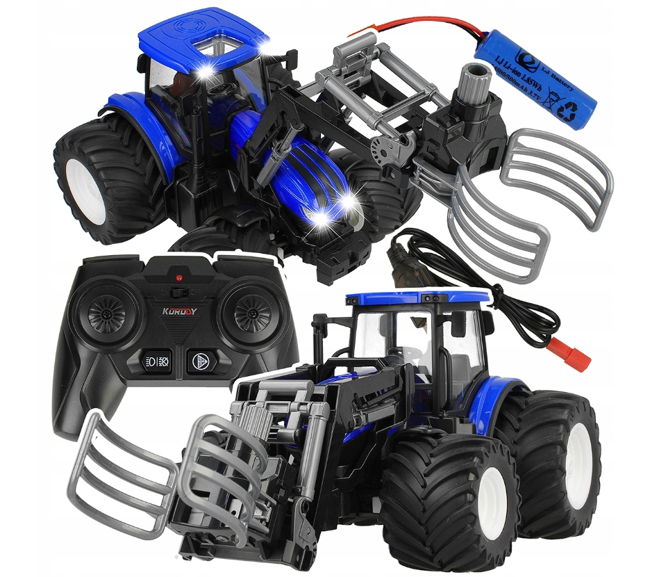 Zdalnie Sterowany Niebieski Traktor z Chwytakiem do Słomy Mały Rolnik