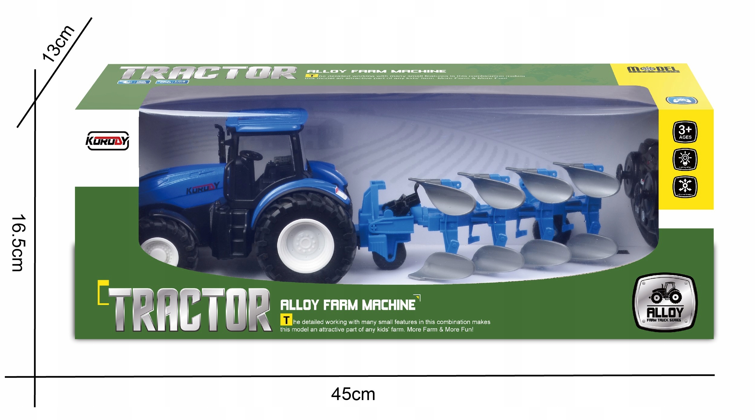 ? Wymiary ciągnika z pługiem: 37 x 16 x 13 cm