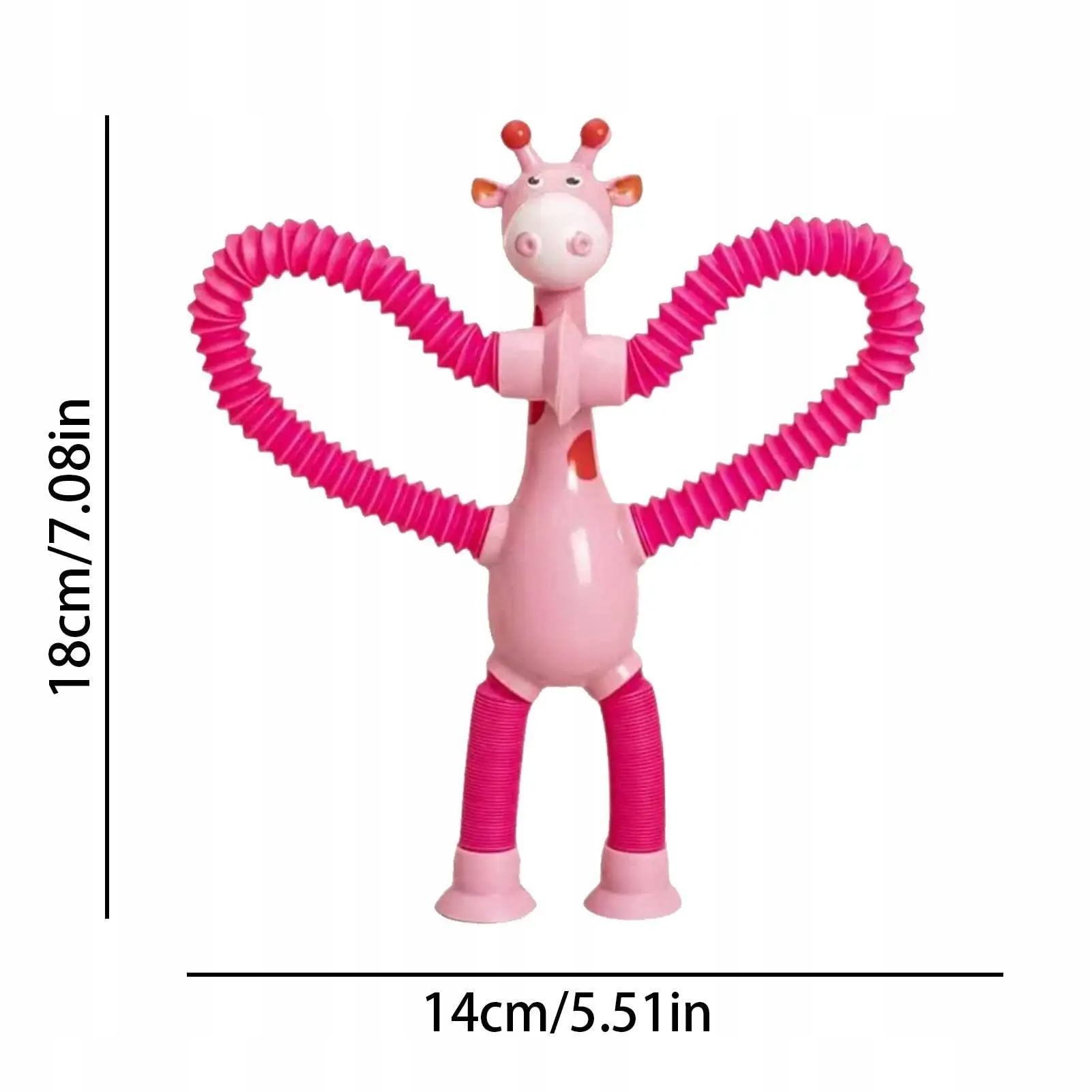 ZESTAW 4 ŻYRAFY ŚWIECĄCE SENSORYCZNA ROZCIĄGLIWE RURKI PRZYSSAWKI DZIECI