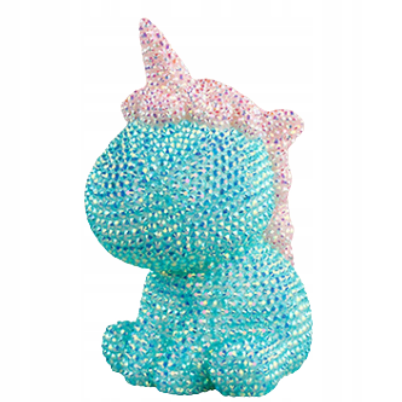 W zestawie znajduje się figurka jednorożca, która stanowi bazę do wyklejania kryształkami.
