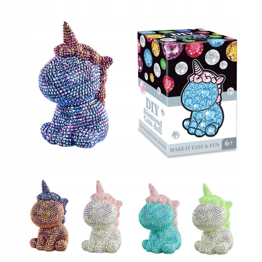 Aby stworzyć efektowną figurkę, zestaw zawiera kolorowe diamenciki w różnych kolorach. Kolorowe kryształki dodają blasku i sprawiają, że jednorożec staje się wyjątkowy i niepowtarzalny. Tacka na kryształki umożliwia wygodne przechowywanie i porządkowanie kryształków, zapewniając łatwy dostęp do nich w trakcie tworzenia.