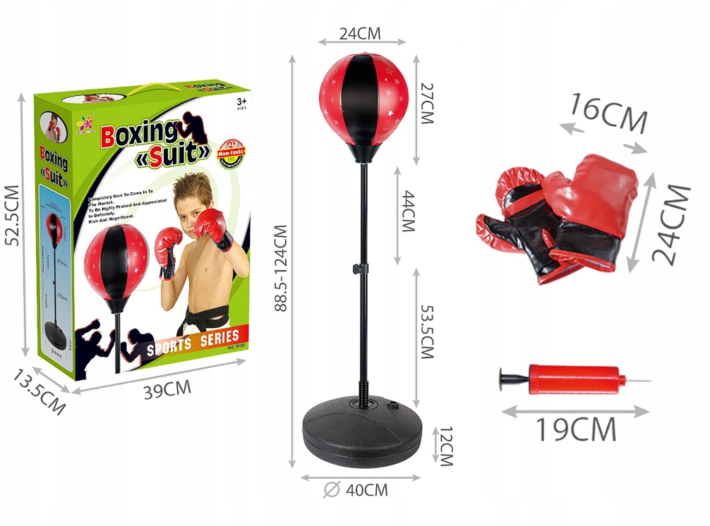 ? Zawartość zestawu: gruszka, stojak, rękawice bokserskie, pompka