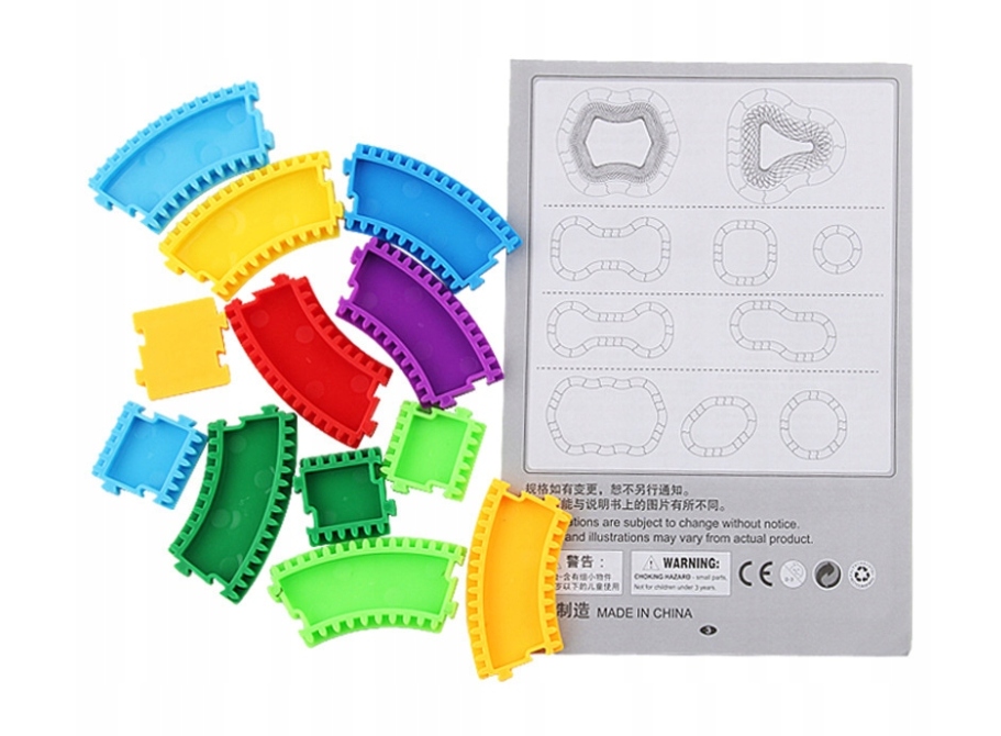 ? Zestaw zawiera: 4 szablony, 12 elementów toru, 3 pisaki