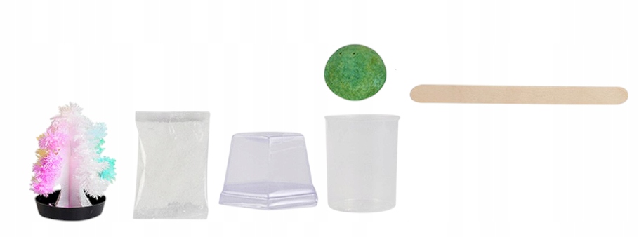 ? Zawartość zestawu: baza kartonowa w kształcie choinki, roztwór do hodowli, pojemnik, instrukcja.