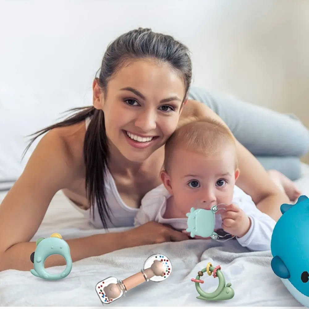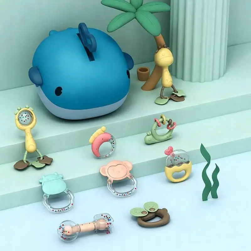 Zestaw Grzechotek Dla Niemowląt Gryzaki Walizka Wieloryb Kuferek Ząbkowanie