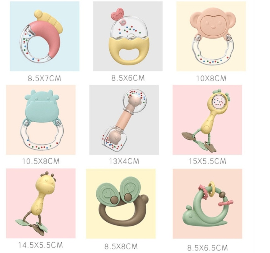 ✅ Kompletny zestaw – 10 różnych grzechotek i gryzaków o ciekawych kształtach i funkcjach dla pełnej zabawy.
