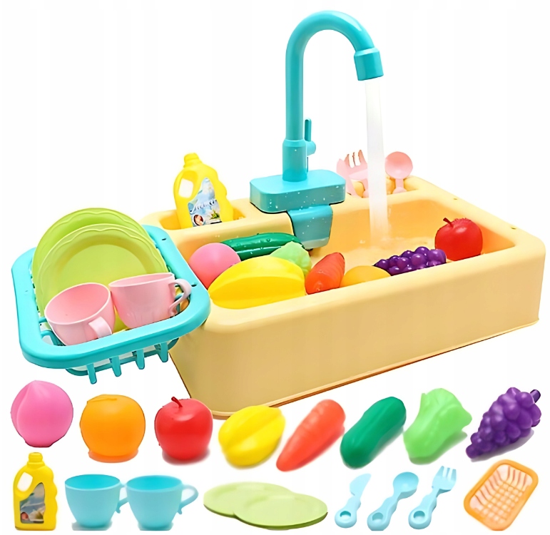 Zlew Zlewozmywak Zabawka z Akcesoriami Funkcja Puszczania Wody Mały Kucharz
